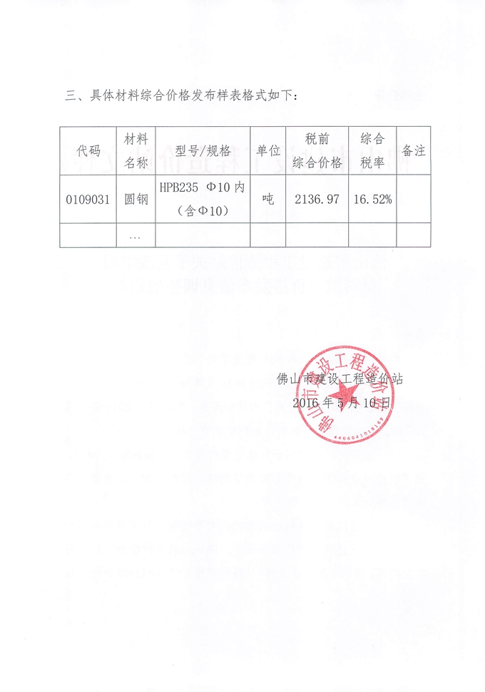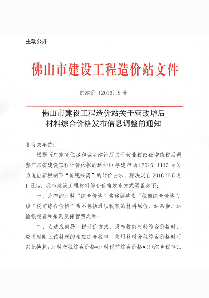 佛山市建設(shè)工程造價(jià)站關(guān)于營改增后材料綜合價(jià)格發(fā)布信息調(diào)整的通知