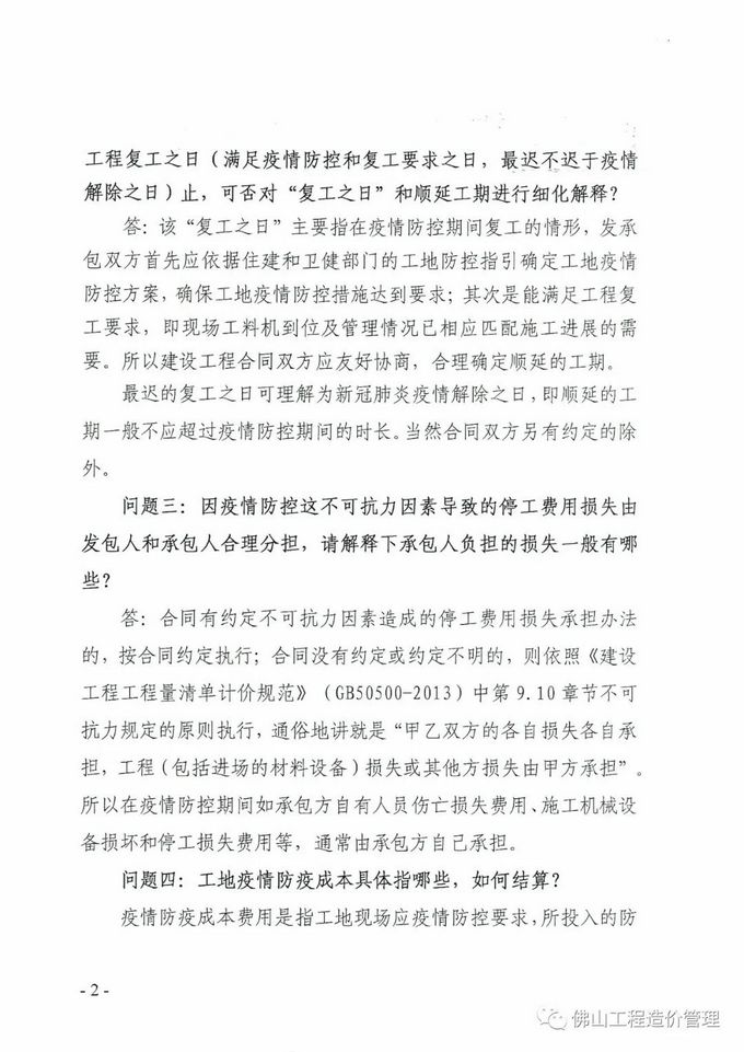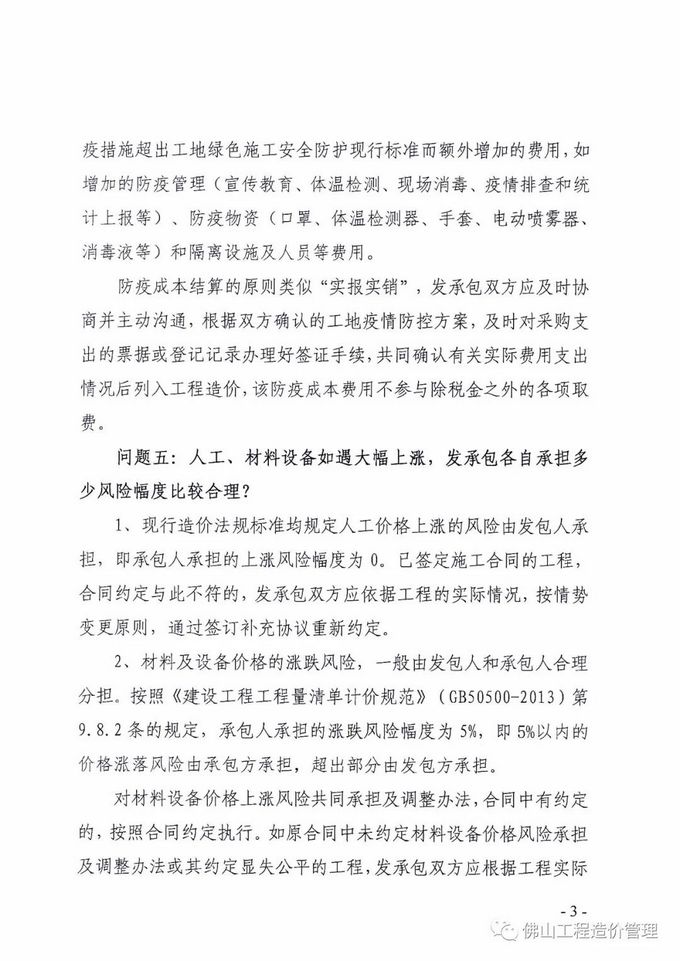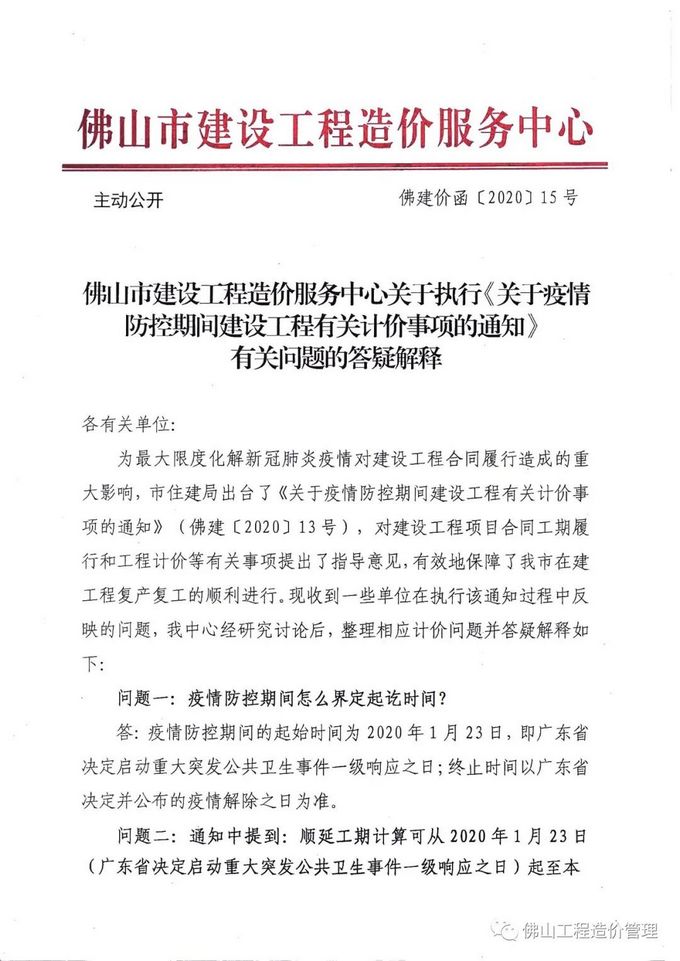 佛山市建設工程造價服務中心關(guān)于執(zhí)行《關(guān)于疫情防控期間建設工程有關(guān)計價事項的通知》有關(guān)問題的答疑解釋