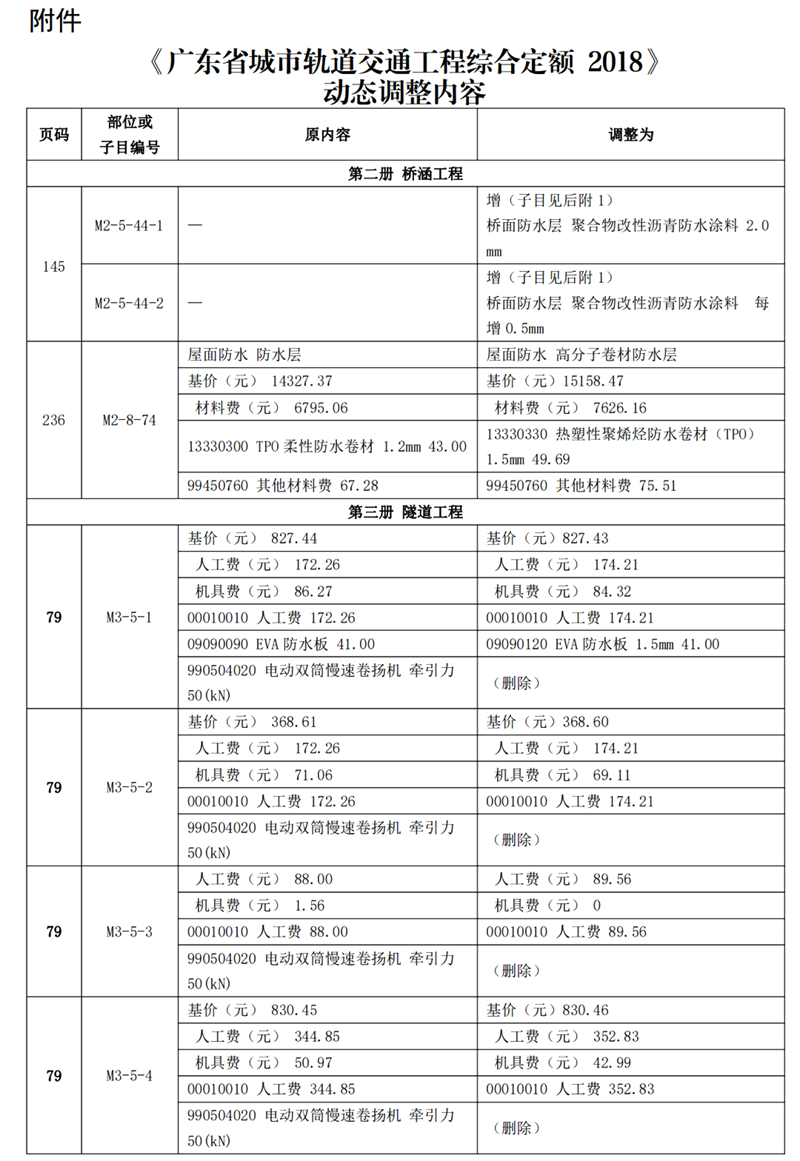 附件:《廣東省城市軌道交通工程綜合定額 2018》動(dòng)態(tài)調(diào)整內(nèi)容