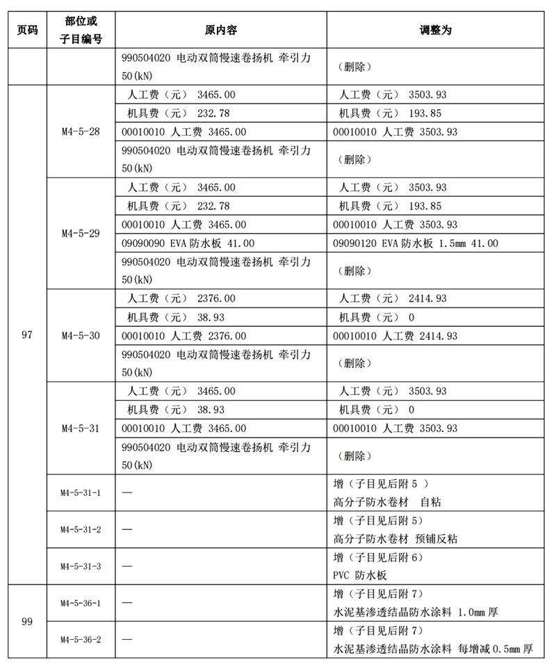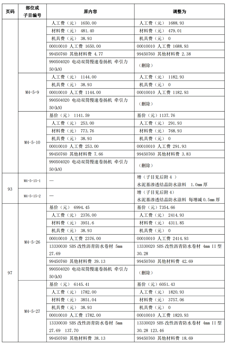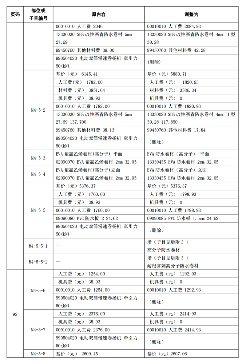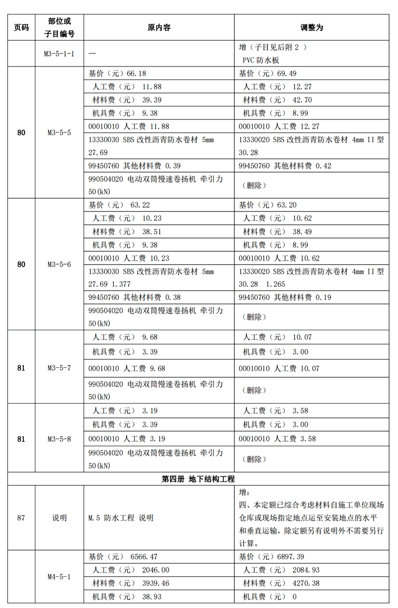 《建筑與市政工程防水通用規(guī)范》GB55030-2022(以下簡(jiǎn)稱為“防水通用規(guī)范”)已頒布實(shí)施,根據(jù)新舊防水規(guī)范之間的差異,我站組織專(zhuān)家調(diào)整了《廣東省城市軌道交通工程綜合定額 2018》防水項(xiàng)目相關(guān)內(nèi)容,現(xiàn)印發(fā)你們。所調(diào)整內(nèi)容與我省現(xiàn)行工程計(jì)價(jià)依據(jù)配套使用,除合同另有約定外,已經(jīng)合同雙方確認(rèn)的工程造價(jià)成果文件不作調(diào)整。