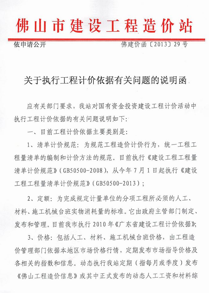 關于執(zhí)行工程計價依據(jù)有關問題的說明函