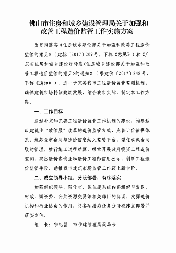 佛山市住房和城鄉建設管理局印發《佛山市住房和城鄉建設管理局關于加強和改善工程造價監管工作實施方案》的通知