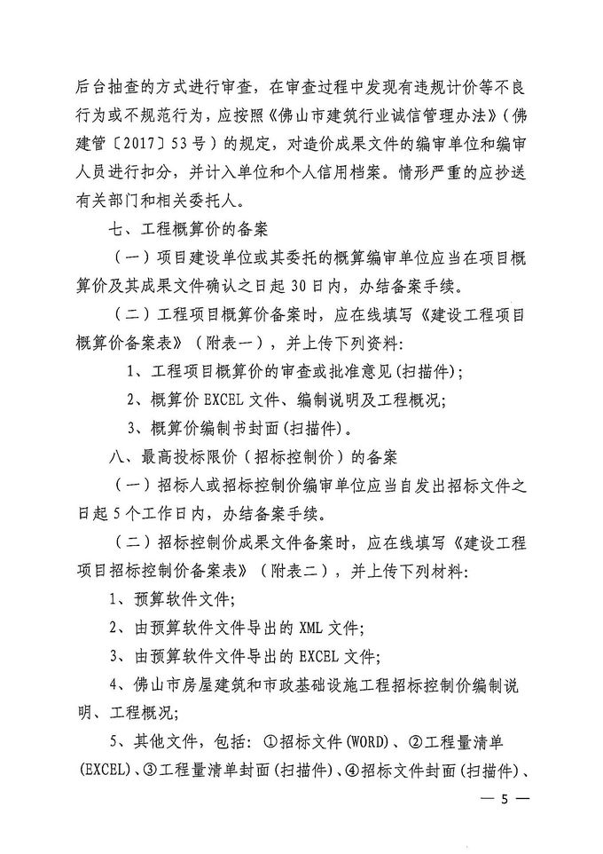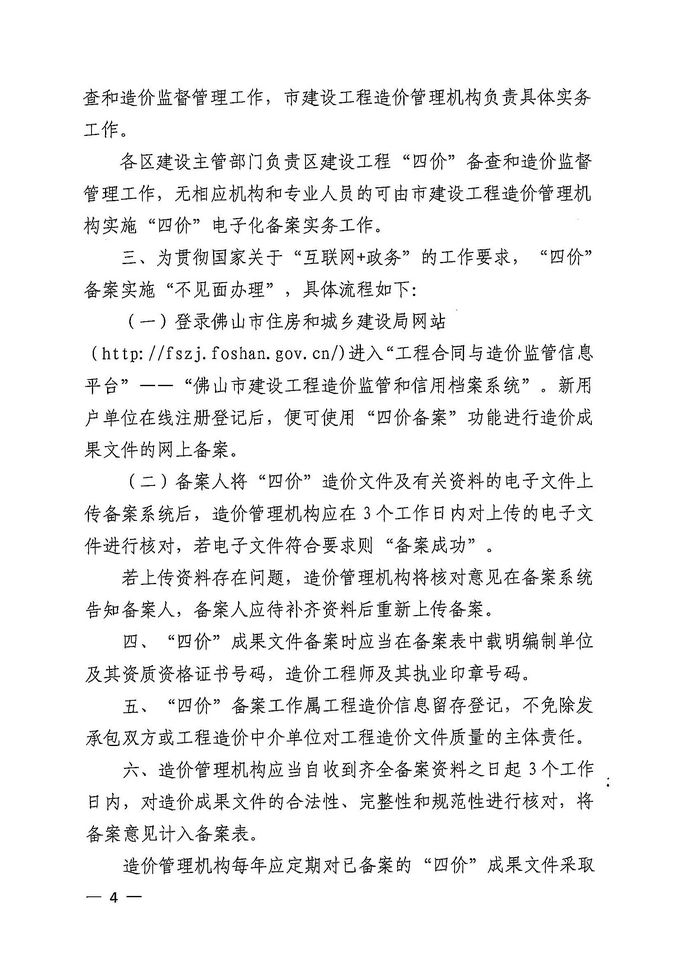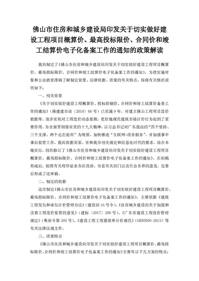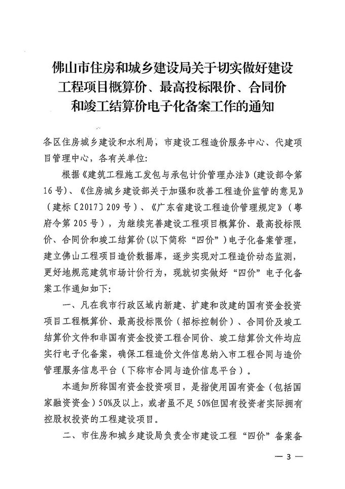 佛山市住房和城鄉建設局印發關于切實做好建設工程項目概算價、最高投標限價、合同價和竣工結算價電子化備案工作的通知