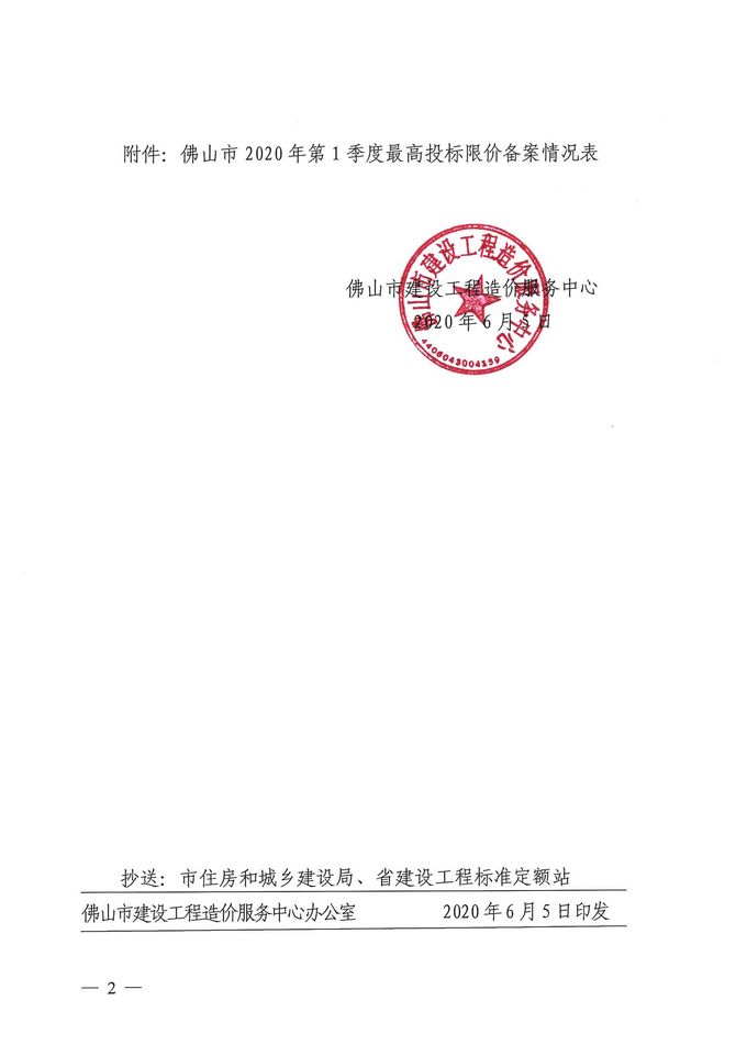佛山市建設(shè)工程造價(jià)服務(wù)中心關(guān)于公開(kāi)2020年第1 季度佛山市最高投標(biāo)限價(jià)備案情況的通知