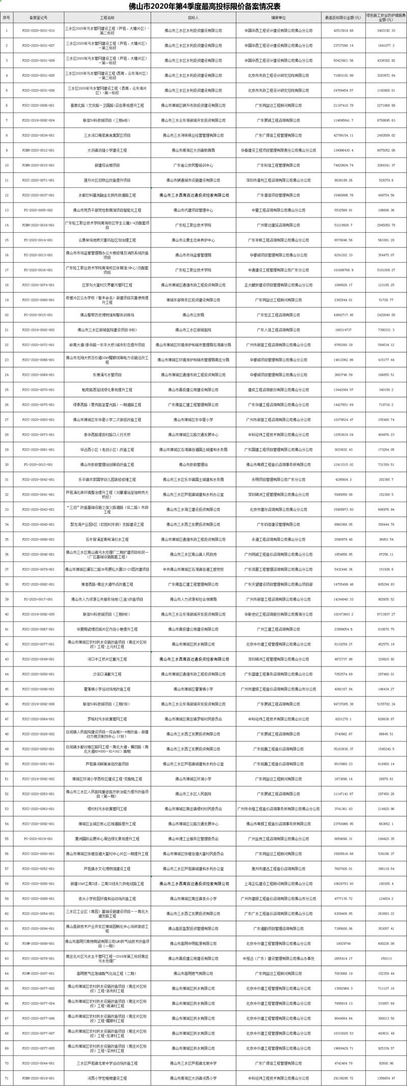 附件:佛山市2020年第4季度最高投標限價備案情況表