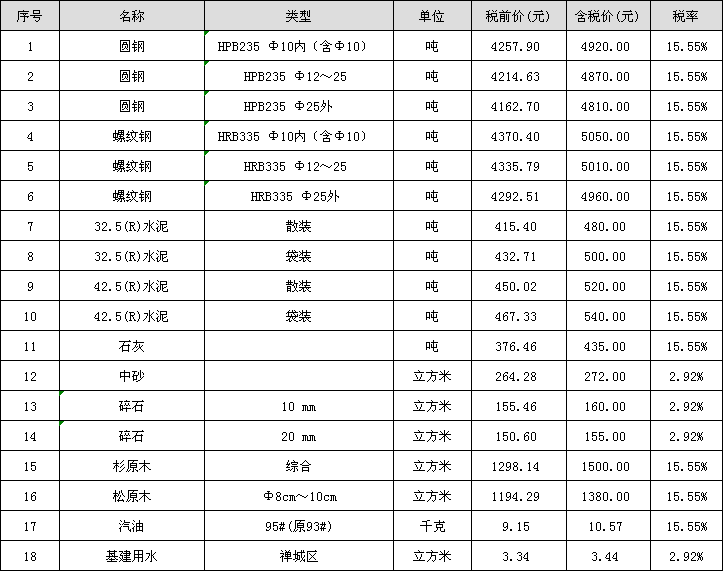 周轉(zhuǎn)材料租賃價(jià)格信息