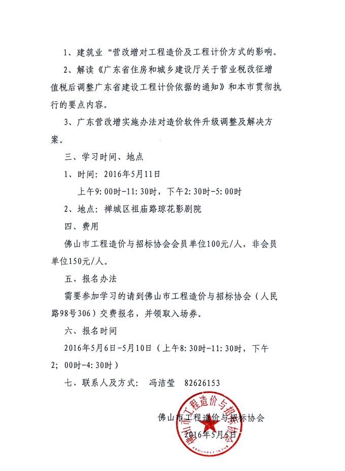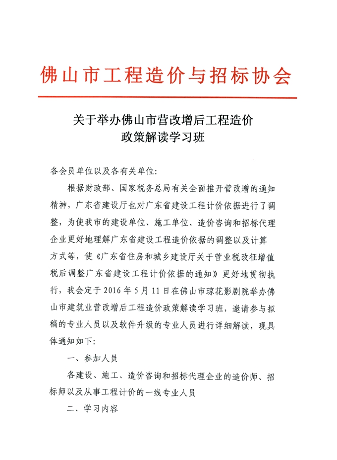 關(guān)于舉辦佛山市營(yíng)改增后工程造價(jià)政策解讀學(xué)習(xí)班