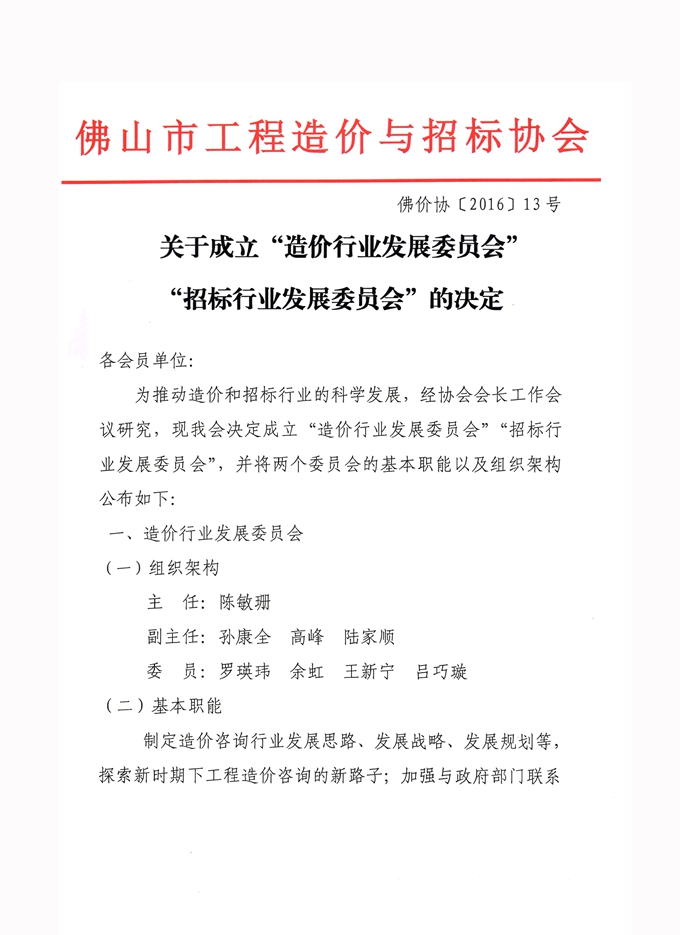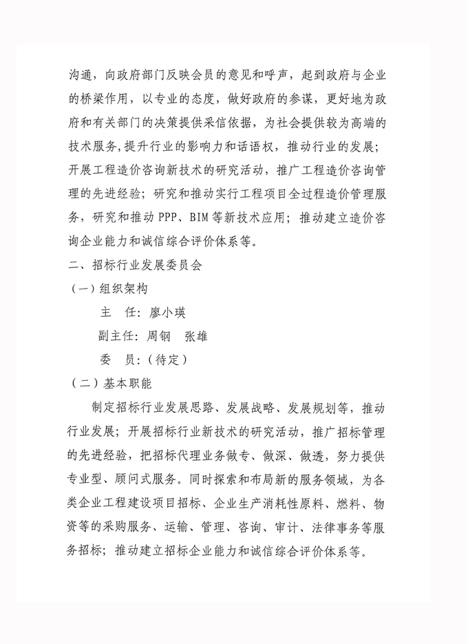 關于成立“造價行業發展委員會”“招標行業發展委員會”的決定