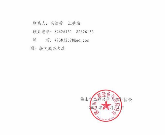 關(guān)于佛山市工程造價(jià)與招標(biāo)協(xié)會第三屆工程造價(jià)優(yōu)秀成果評選結(jié)果的公示通知