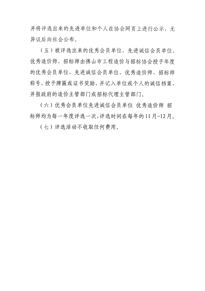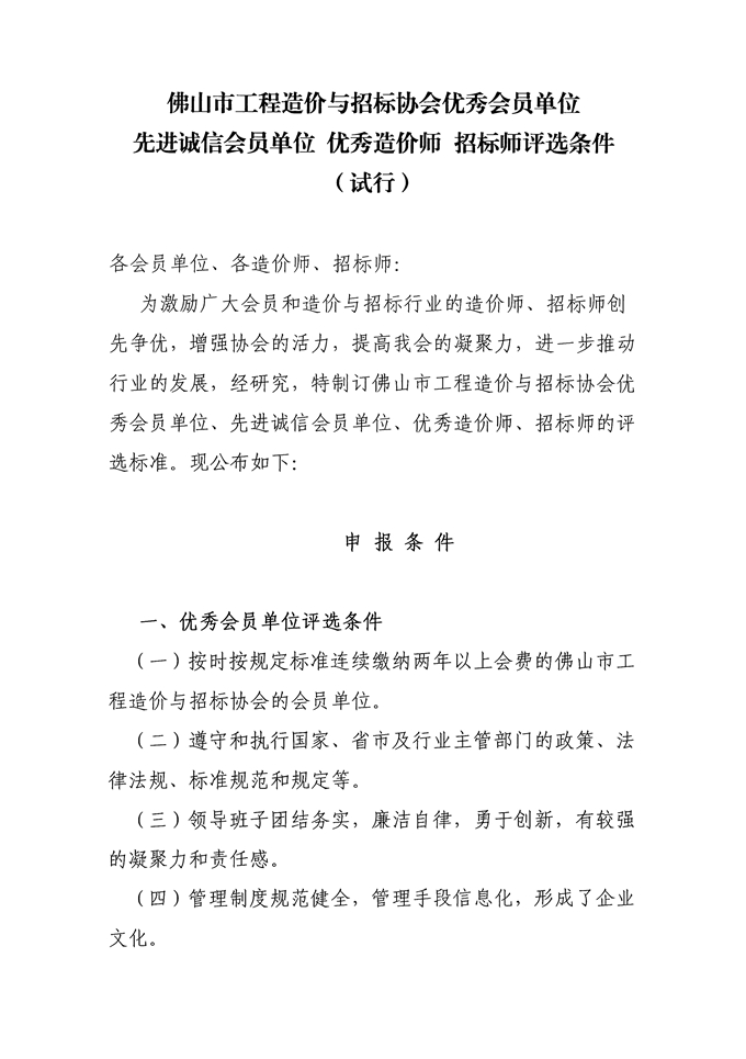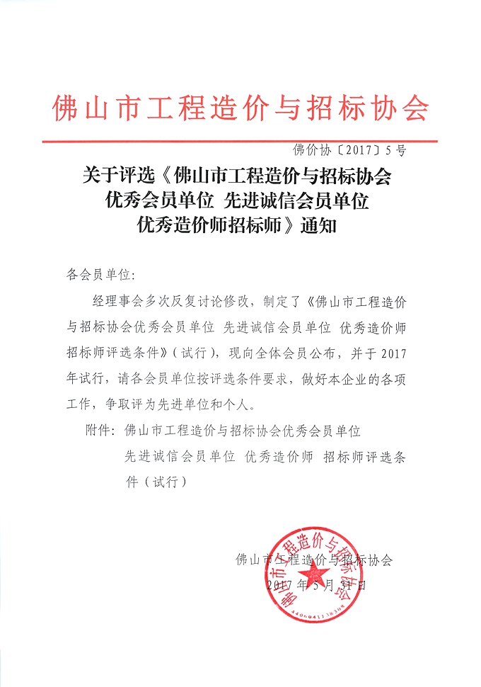 關于評選《佛山市工程造價與招標協會 優秀會員單位 先進誠信會員單位 優秀造價師招標師》通知