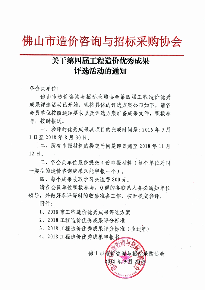 關于第四屆工程造價優秀成果評選活動的通知