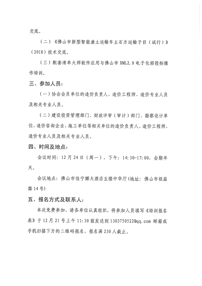 關于召開《廣東省城市地下綜合管廊工程綜合定額(2018)》及《佛山市新型智能渣土運輸車土石方運輸定額》技術交底培訓的通知