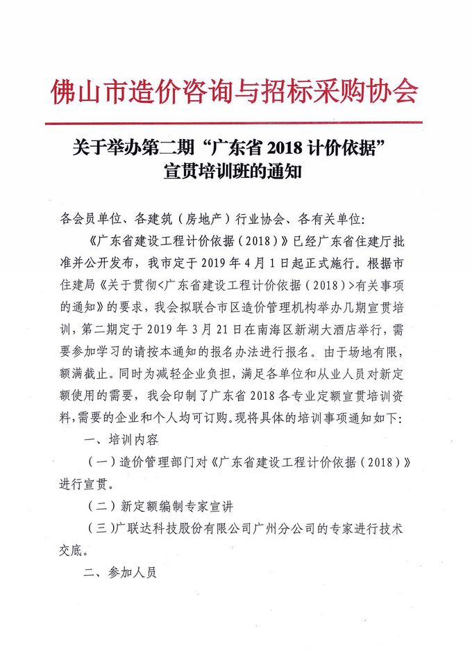 關于舉辦第二期“廣東省2018計價依據”宣貫培訓班的通知