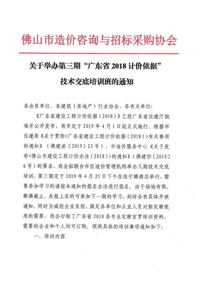 關(guān)于舉辦第三期“廣東省2018計價依據(jù)”技術(shù)交底培訓(xùn)班的通知