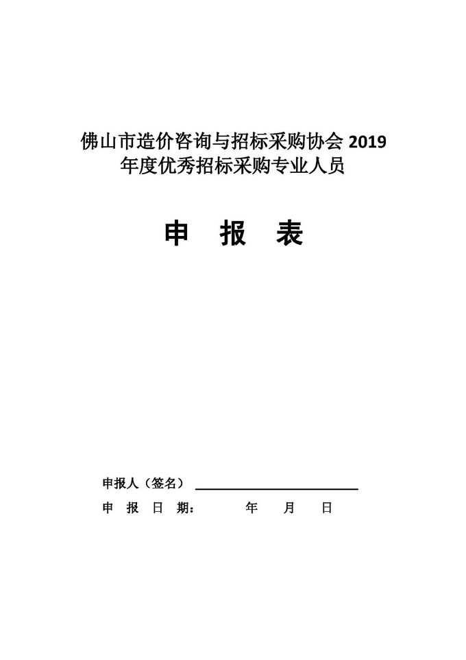 附件4、佛山市造價咨詢與招標采購協會2019年度優秀招標采購專業人員申 報 表