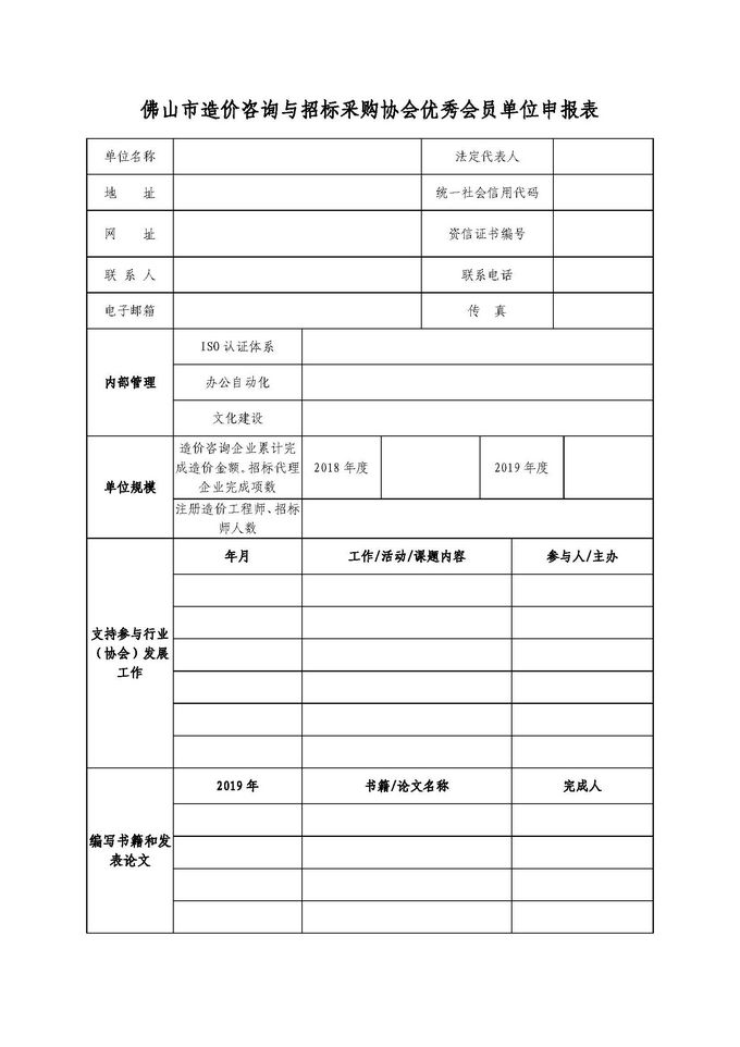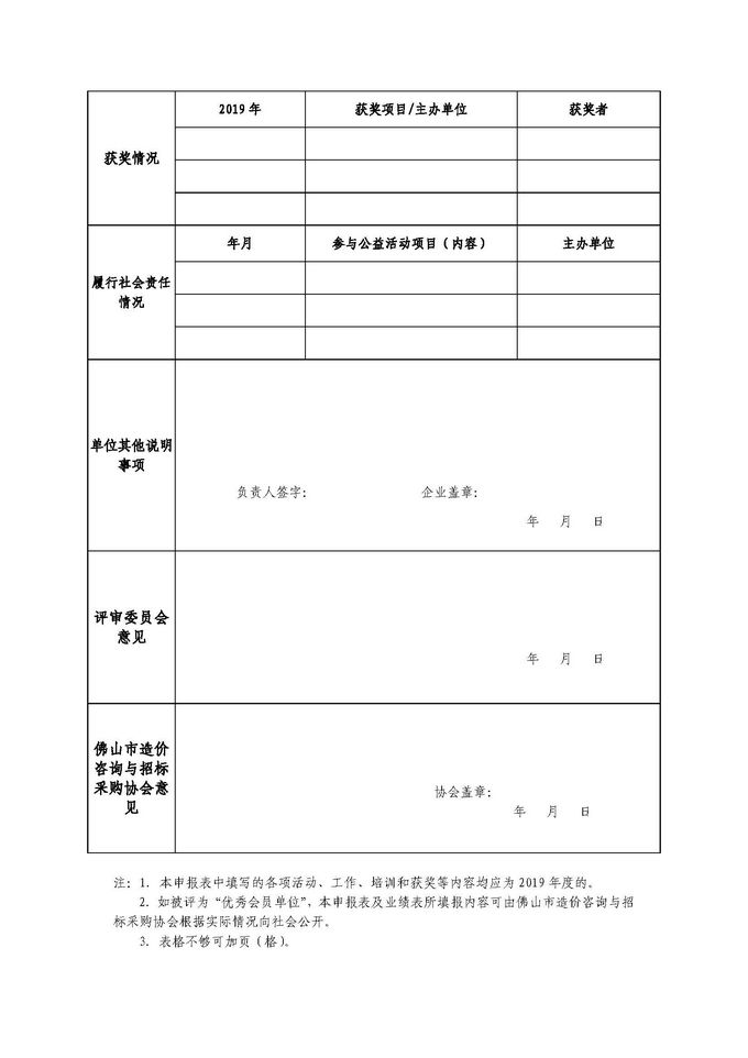 附件2、佛山市造價咨詢與招標采購協會2019年度優秀會員單位申 報 表