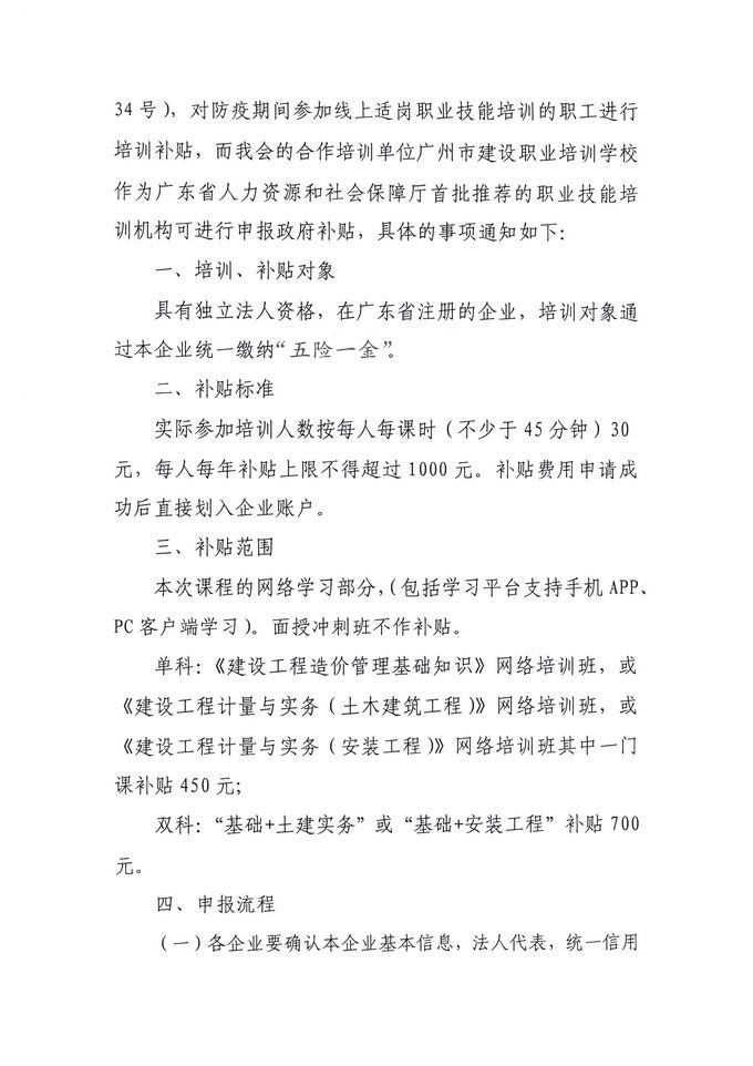 關于二級造價師考前培訓班調整收費標準及職工線上適崗職業技能培訓補貼的通知