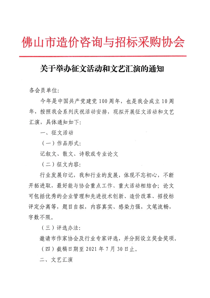 關(guān)于舉辦征文活動和文藝匯演的通知
