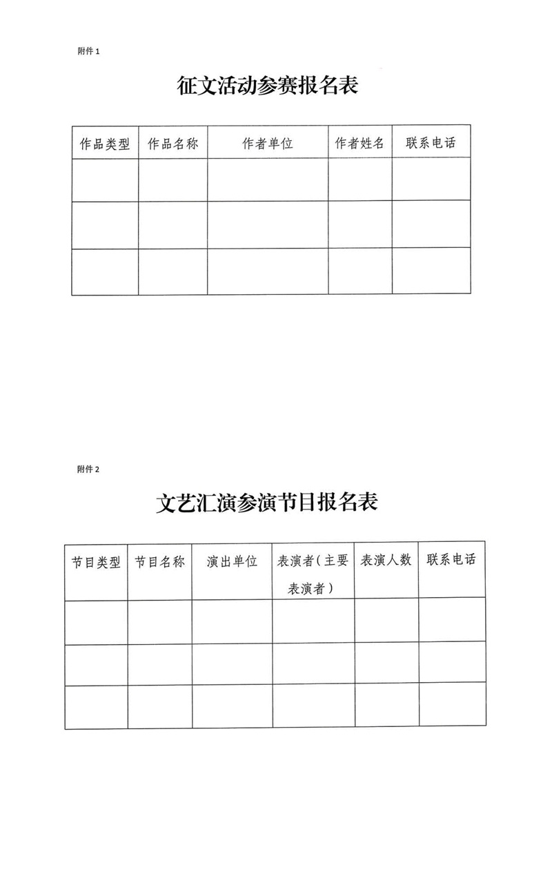 附件:1.征文活動參賽報(bào)名表;2.文藝匯演參演節(jié)目報(bào)名表