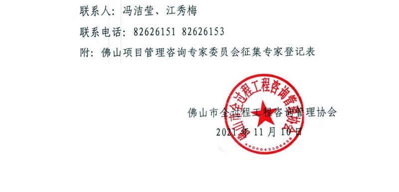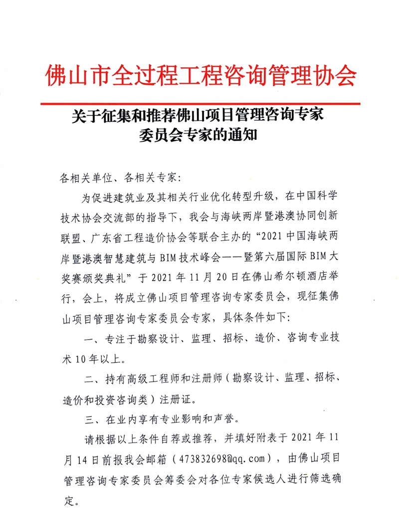 關(guān)于征集和推薦佛山項目管理咨詢專家委員會專家的通知