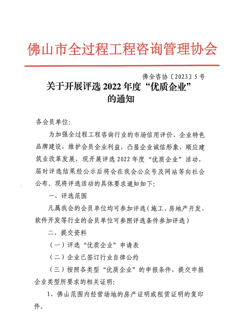關(guān)于開展評(píng)選2022年度“優(yōu)質(zhì)企業(yè)”的通知