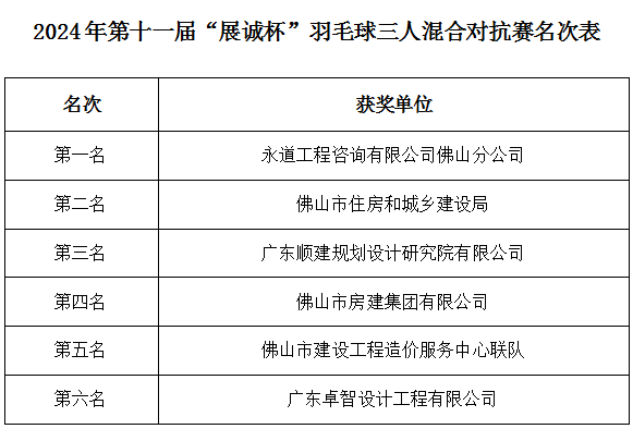 “展誠”相遇 無“羽”倫比 | 佛山市全過程工程咨詢管理協(xié)會2024年第十一屆“展誠杯”羽毛球團體賽圓滿落幕