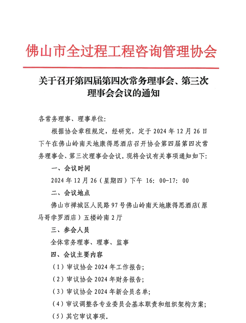 關于召開第四屆第四次常務理事會、第三次理事會會議的通知