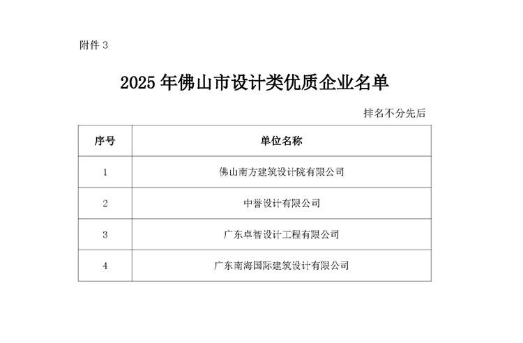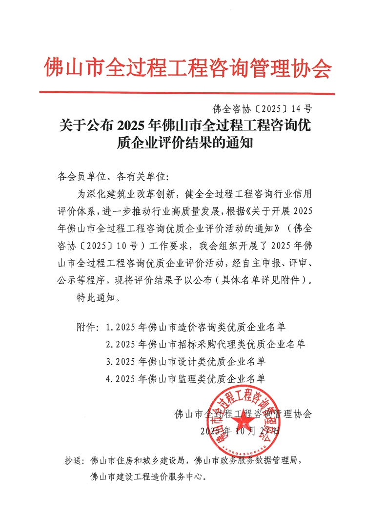 關于公布2025年佛山市全過程工程咨詢優質企業評價結果的通知