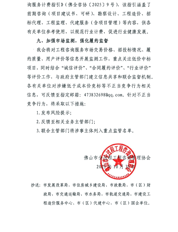 關(guān)于推動(dòng)佛山市全過(guò)程工程咨詢行業(yè)“反內(nèi)卷 穩(wěn)增長(zhǎng)”實(shí)現(xiàn)高質(zhì)量發(fā)展的指導(dǎo)意見(jiàn)