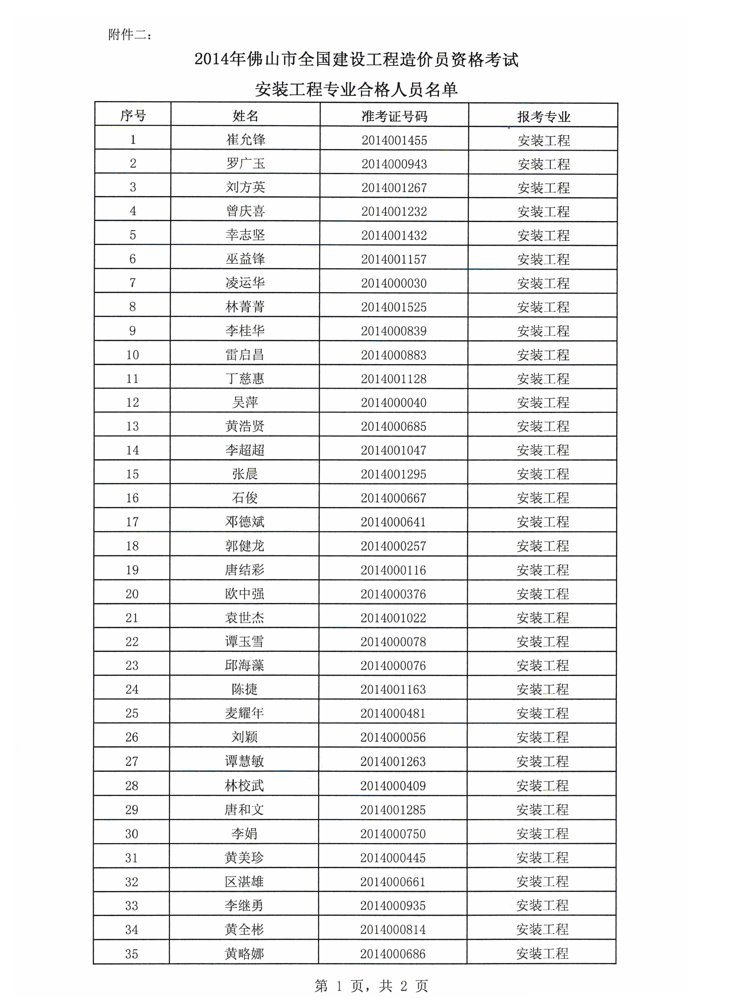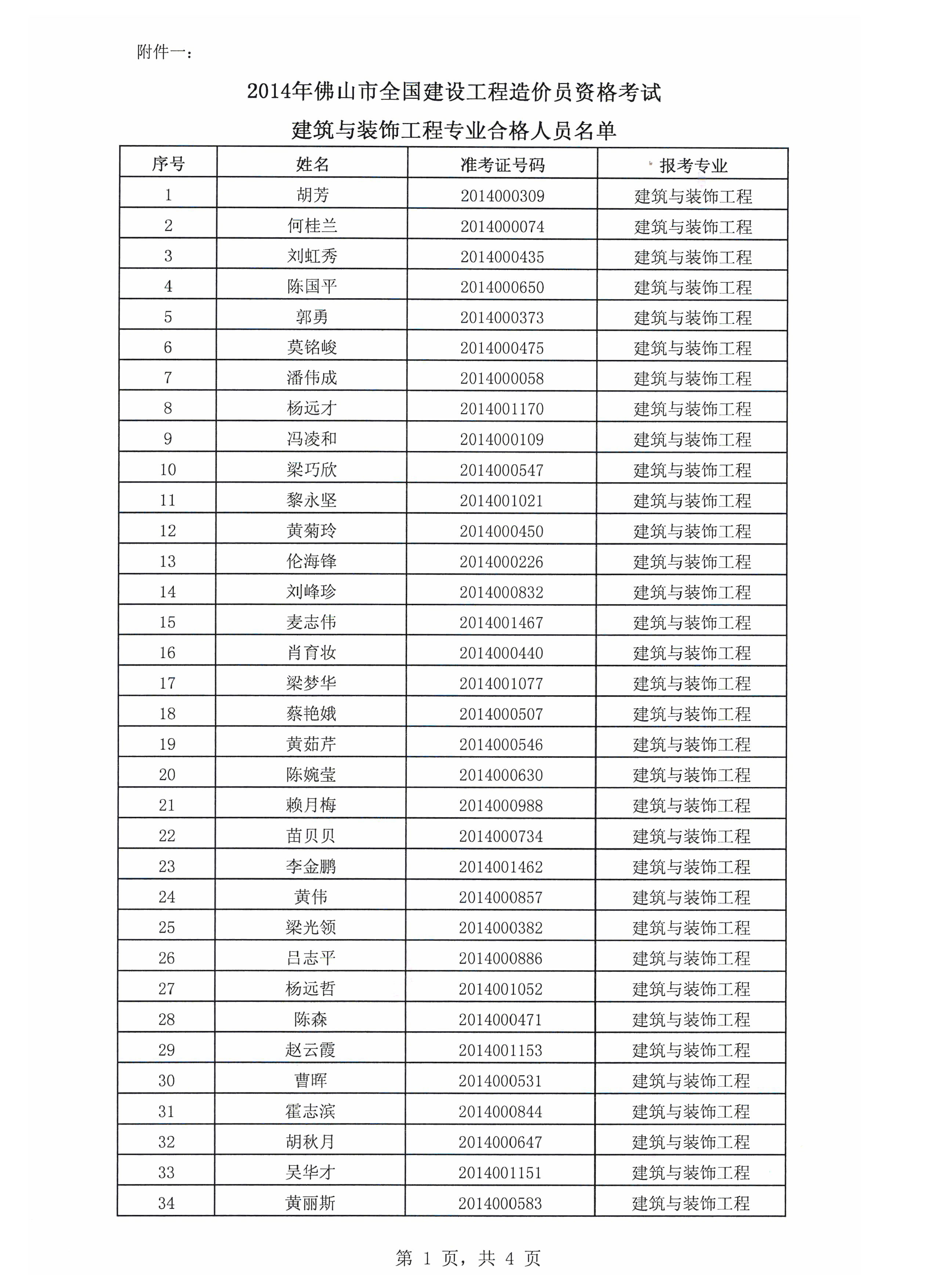 關于公布2014年度佛山市全國建設工程造價員資格考試結果的函