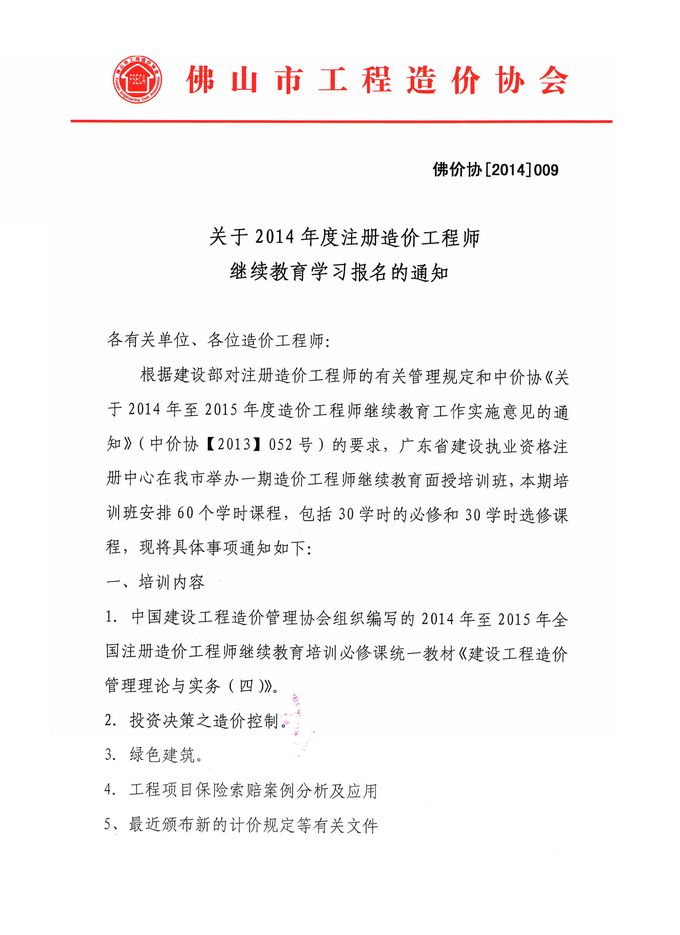 關于2014年度注冊造價工程師繼續(xù)教育學習報名的通知