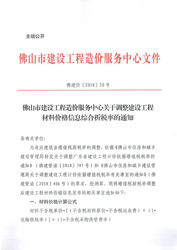 佛山市建設(shè)工程造價(jià)服務(wù)中心關(guān)于調(diào)整建設(shè)工程材料價(jià)格信息綜合折稅率的通知
