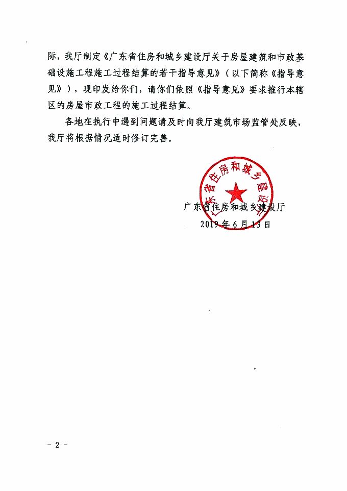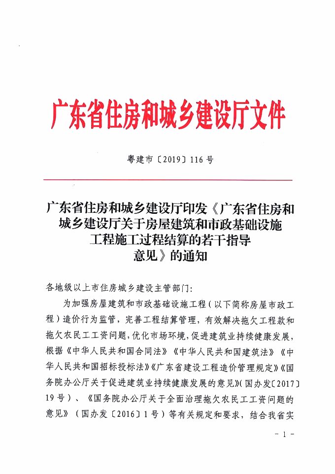 佛山市住房和城鄉建設局轉發關于印發《廣東省住房和城鄉建設廳關于房屋建筑和市政基礎設施工程施工過程結算的若干指導意見》的通知