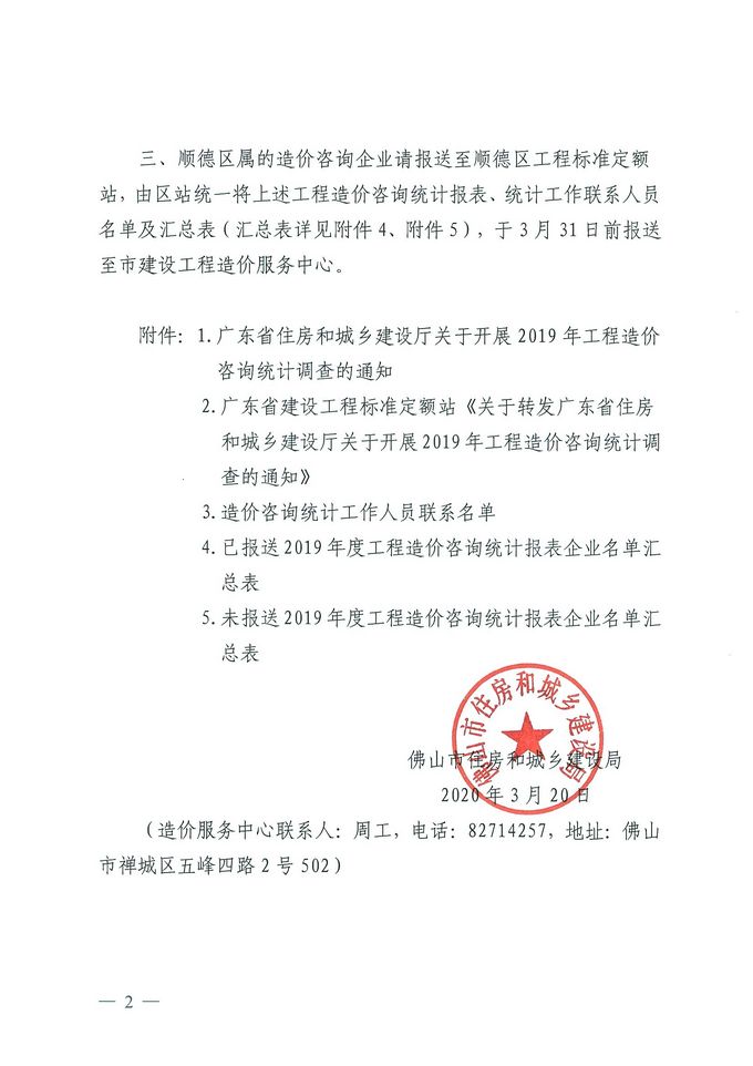 佛山市住房和城鄉建設局轉發廣東省住房和城鄉建設廳關于報送2019年工程造價咨詢統計報表的通知