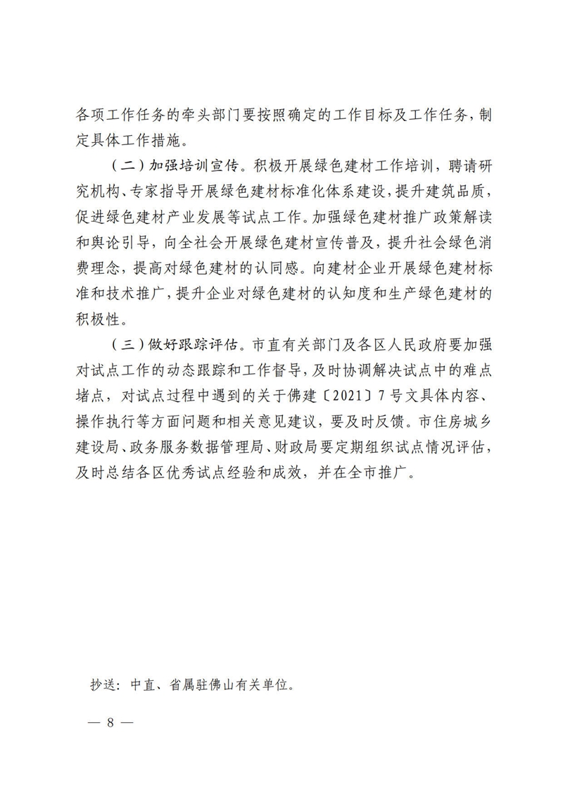佛山市人民政府辦公室關于印發佛山市推廣綠色建材促進建筑品質提升試點工作實施方案的通知