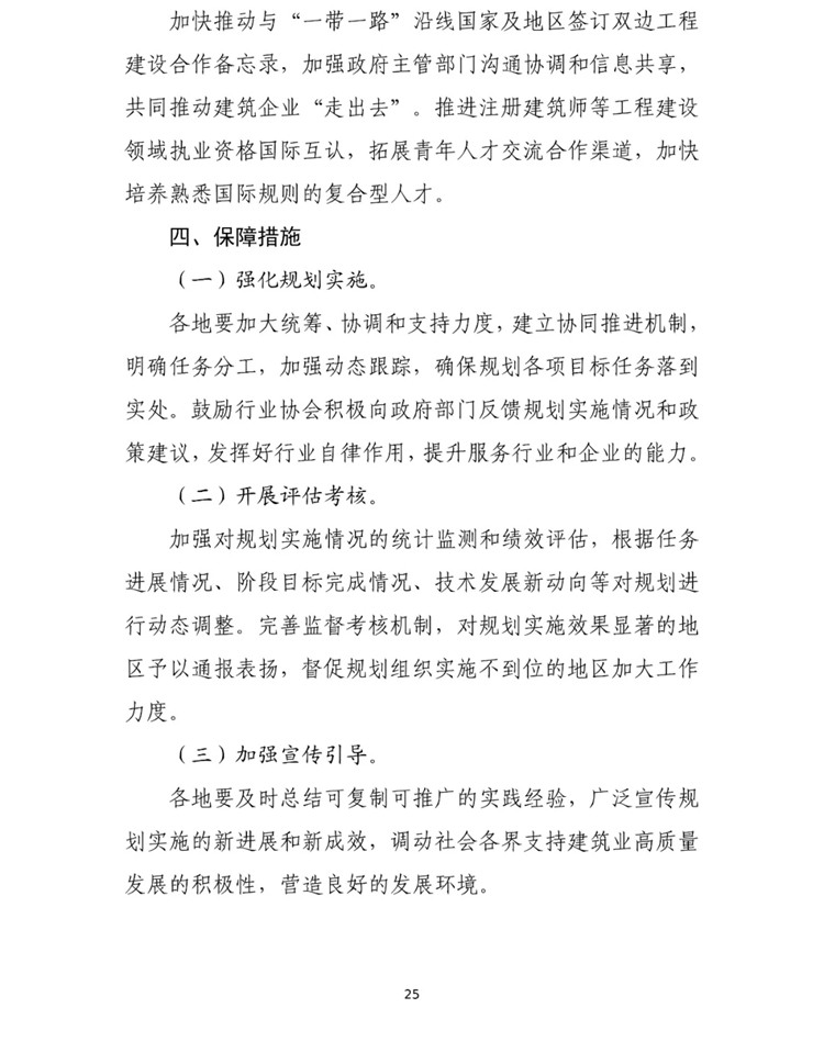 為指導和促進“十四五”時期建筑業高質量發展,根據《中華人民共和國國民經濟和社會發展第十四個五年規劃和2035年遠景目標綱要》,我部組織編制了《“十四五”建筑業發展規劃》。現印發給你們,請結合實際認真貫徹落實。