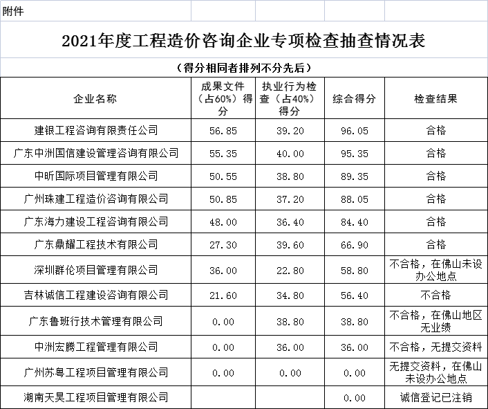 佛山市住房和城鄉建設局關于2021年度全市工程造價咨詢企業專項檢查情況的通報