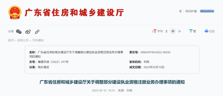 轉發 | 廣東省住建廳:調整部分建設執業資格注冊業務辦理事項,5月16日起生效!