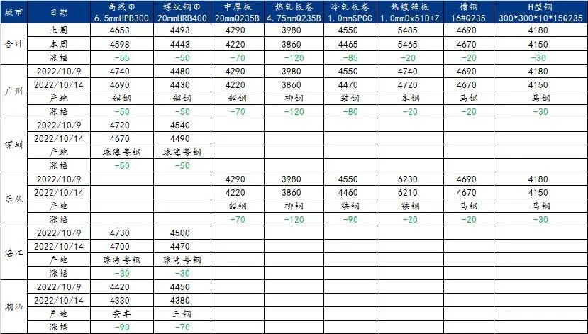 轉(zhuǎn)發(fā) | 廣東省鋼材價(jià)格全面下跌(10.9-10.14)