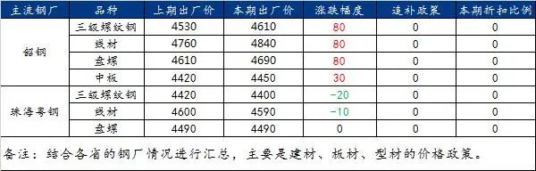 本周廣東主導(dǎo)鋼廠出廠價(jià)格漲跌互現(xiàn),其中韶鋼詢價(jià)對(duì)建筑鋼材上調(diào)80元/噸,對(duì)中厚板上調(diào)30元/噸;珠海粵鋼對(duì)建筑鋼材下調(diào)10-20元/噸。