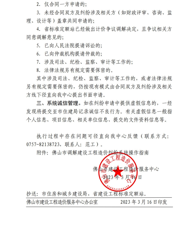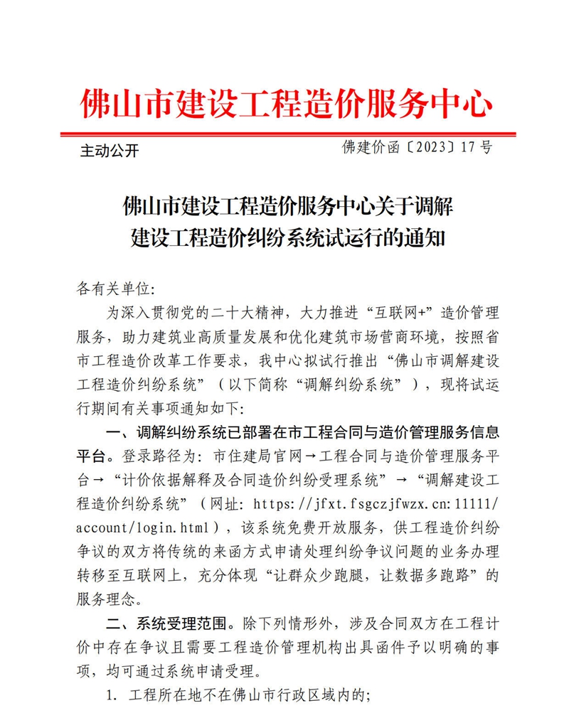 佛山市建設工程造價服務中心關于調解建設工程造價糾紛系統試運行的通知