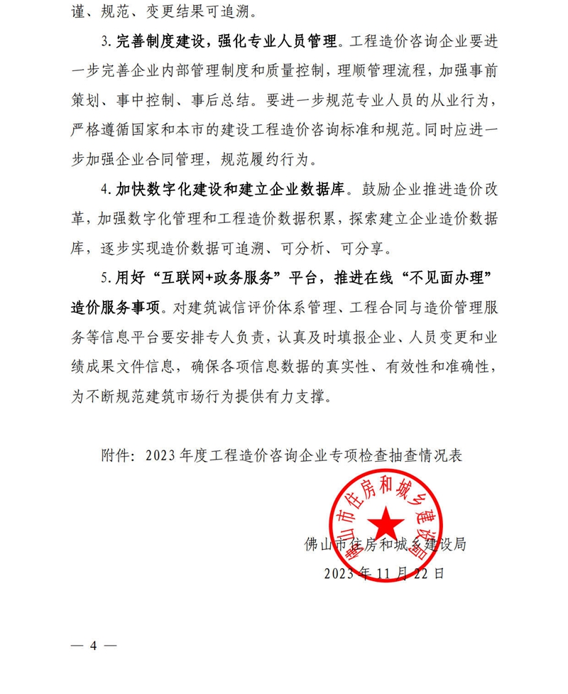 佛山市住房和城鄉建設局關于2023年度全市工程造價咨詢企業專項檢查情況的通報