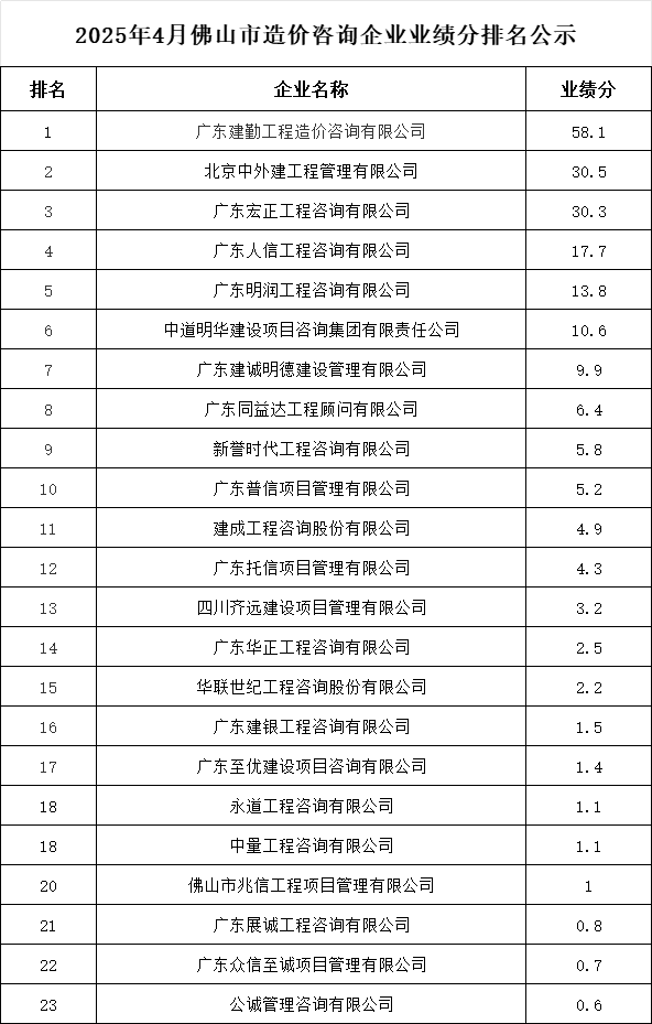 轉(zhuǎn)發(fā) | 2025年4月佛山市造價咨詢企業(yè)業(yè)績分排名公示