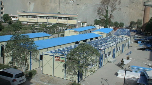 在李國(guó)祥局長(zhǎng)與方小兵總工程師的領(lǐng)導(dǎo)下,各位技術(shù)人員共同奮戰(zhàn),板房參建單位人員廢寢忘食,威州中學(xué)北校區(qū)活動(dòng)板房搭建推進(jìn)迅速,在建的47套板房,已完成22套。