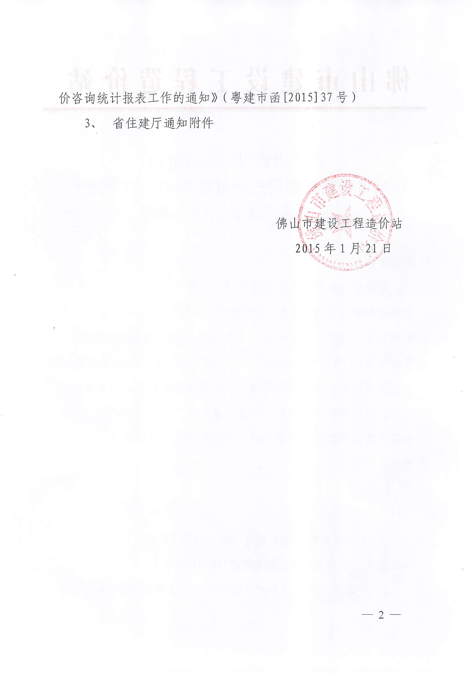佛山市建設工程造價站轉發市住建管理局關于報送2014年工程造價咨詢統計報表工作的通知