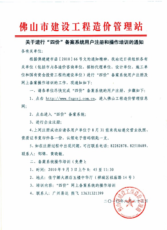 關(guān)于進(jìn)行“四價”備案系統(tǒng)用戶注冊和操作培訓(xùn)的通知