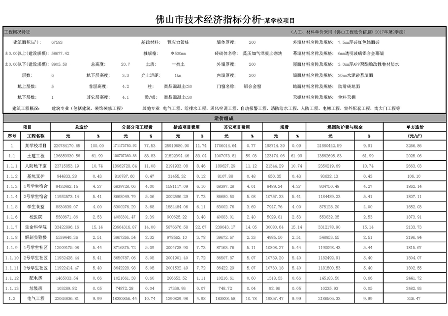 佛山市2018年第1季度技術經濟指標分析—某學校項目