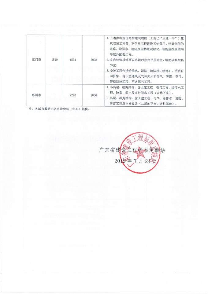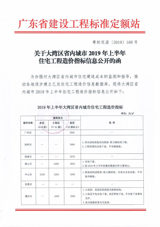 關(guān)于大灣區(qū)省內(nèi)城市2019年上半年住宅工程造價(jià)指 標(biāo)信息公開的函