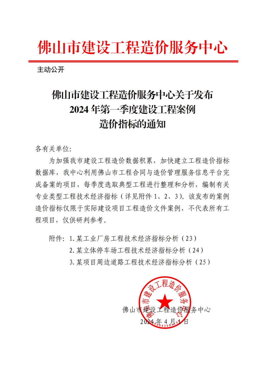 轉(zhuǎn)發(fā) | 佛山市建設(shè)工程造價(jià)服務(wù)中心關(guān)于發(fā)布2024年第一季度建設(shè)工程案例造價(jià)指標(biāo)的通知
