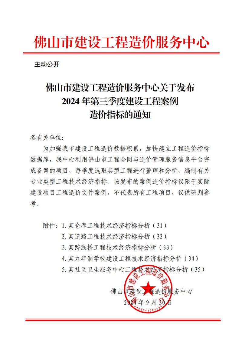 轉(zhuǎn)發(fā) | 佛山市建設(shè)工程造價服務(wù)中心關(guān)于發(fā)布2024年第三季度建設(shè)工程案例造價指標(biāo)的通知
